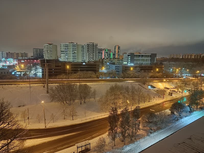 В ночном режиме камера сильно поднимает экспозицию, добавляет искусственной резкости, но деталей сохраняется на удивление много. Впрочем, всё равно качество ночной съемки не самое высокое.