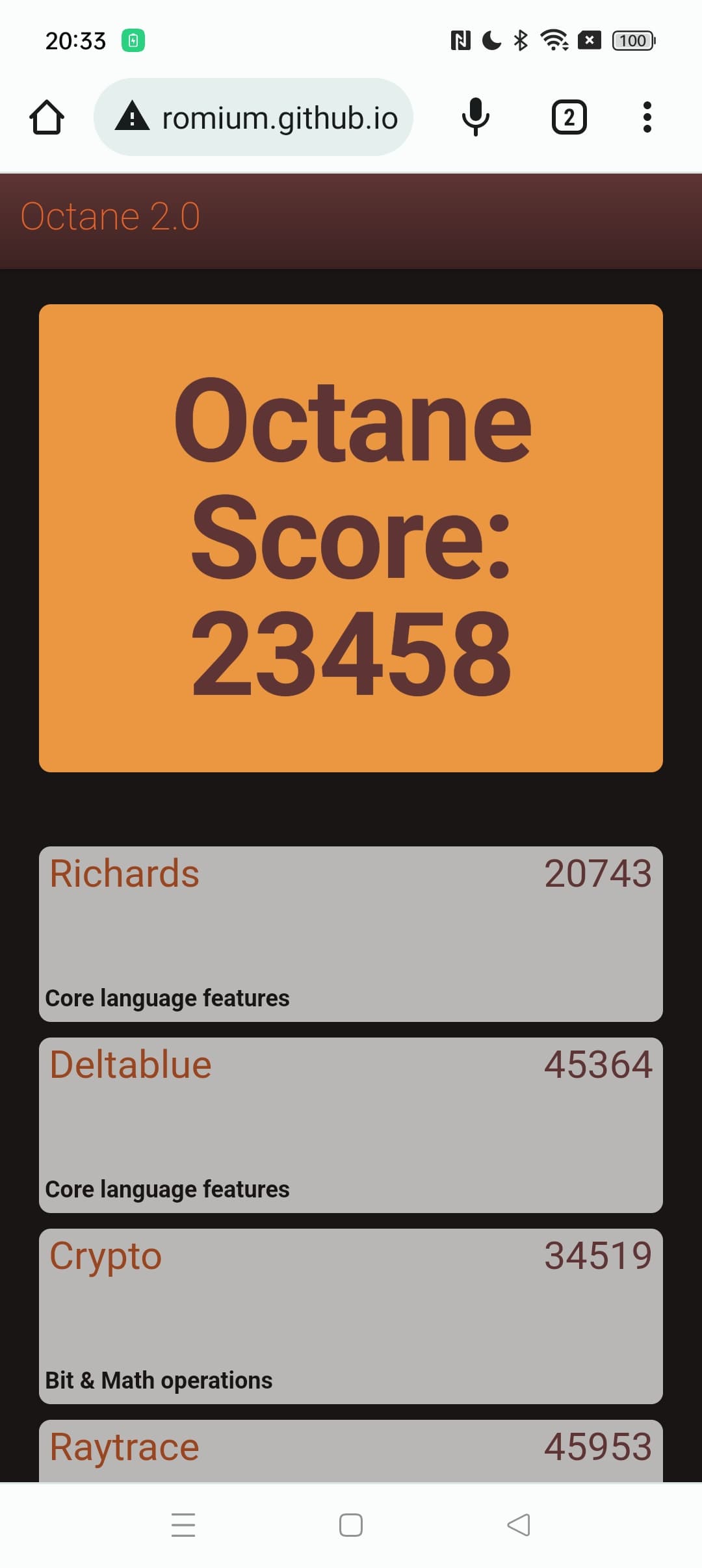 | Google Octane 2 (больше — лучше) | 23458 | 31120 | 36245 | 31919 | 7257 |