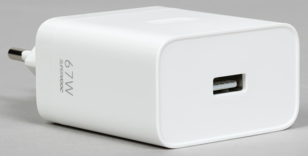 Комплект включает зарядное устройство с максимальной выходной мощностью 67 Вт, соединительный кабель и простой прозрачный гибкий чехол.