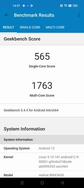 Realme 10 работает на SoC Mediatek Helio G99 с восемью процессорными ядрами: 2×Cortex-A76 @2,2 ГГц + 6×Cortex-A55 @2,0 ГГц. Роль графического процессора выполняет GPU Mali-G57 MC2.
