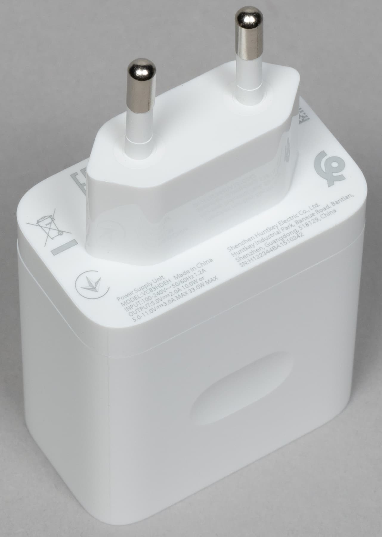 В комплекте со смартфоном идет соединительный кабель USB-C, сетевое зарядное устройство с выходной мощностью 33 Вт и прозрачный гибкий защитный чехол.