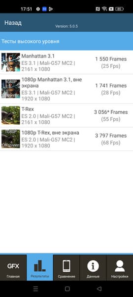Все результаты, полученные нами при тестировании смартфона в самых свежих версиях популярных бенчмарков, мы для удобства свели в таблицы. В таблицу обычно добавляется несколько других аппаратов из различных сегментов, также протестированных на аналогичных последних версиях бенчмарков (это делается лишь для наглядной оценки полученных сухих цифр). К сожалению, в рамках одного сравнения нельзя представить результаты из разных версий бенчмарков, поэтому «за кадром» остаются многие достойные и актуальные модели — по причине того, что они в свое время проходили «полосу препятствий» на предыдущих версиях тестовых программ.