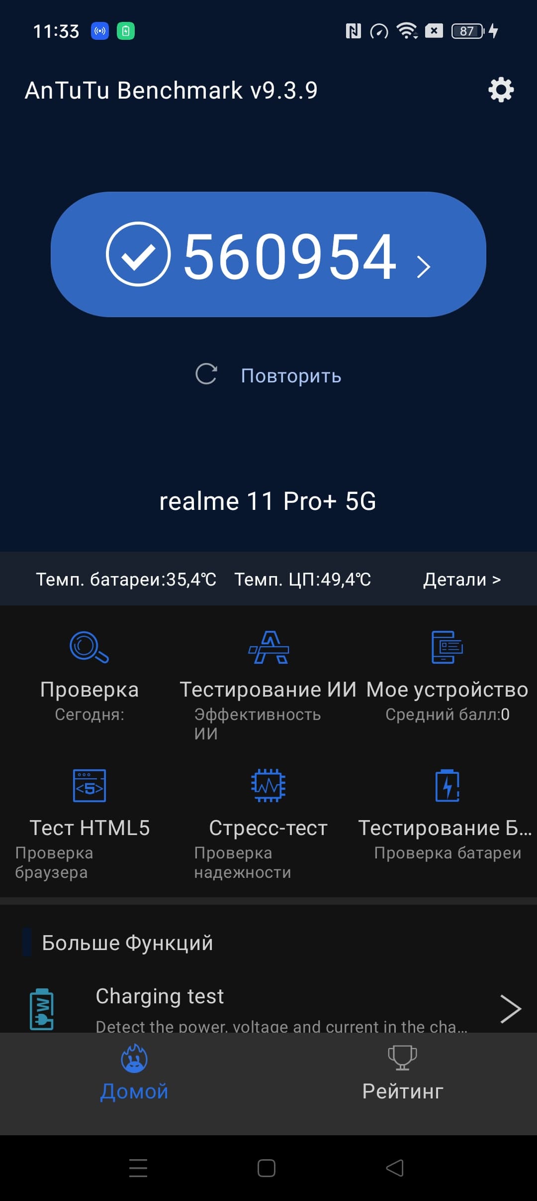 | AnTuTu (v9.x) (больше — лучше) | 560954 | 617019 | 683485 | 602528 | 536193 |