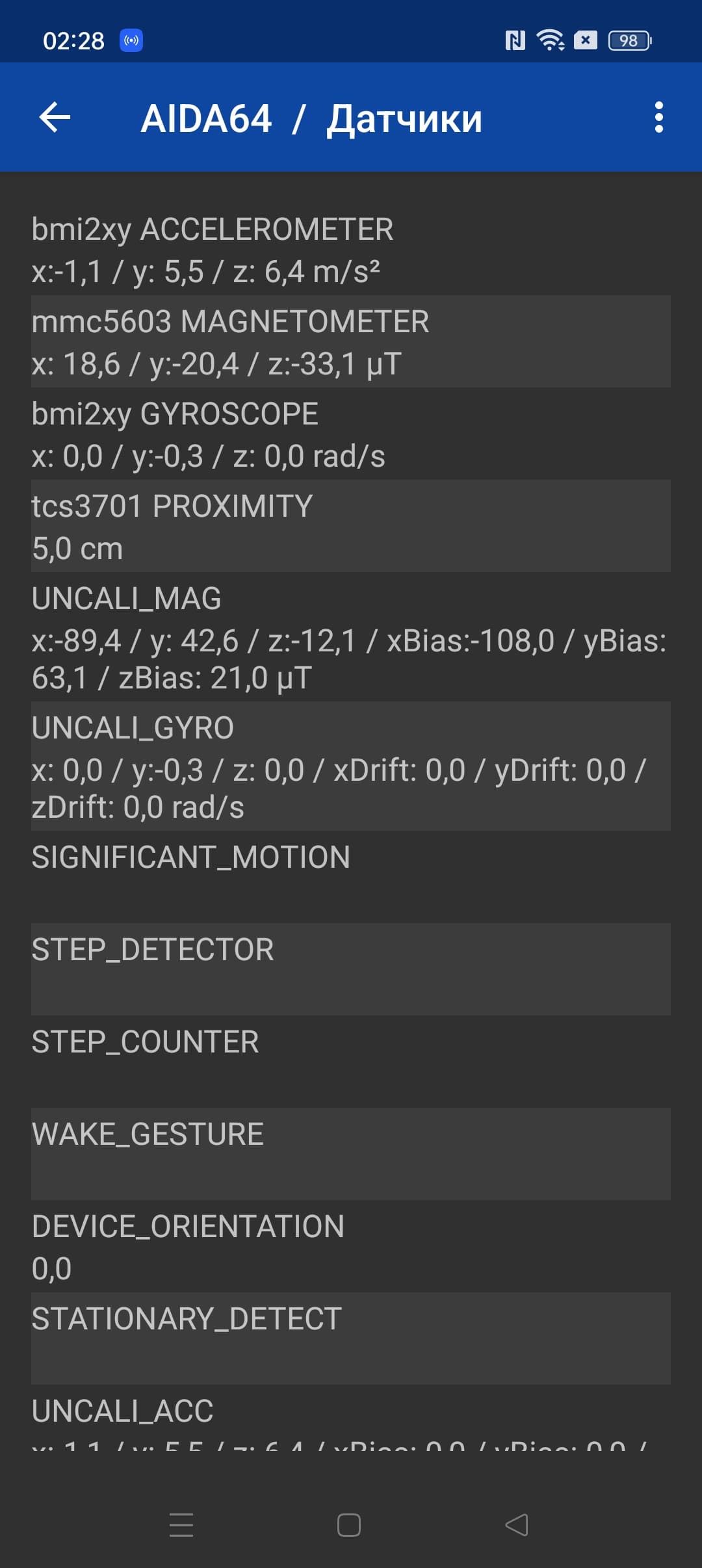 - Датчики приближения и освещения, магнитного поля, акселерометр, гироскоп