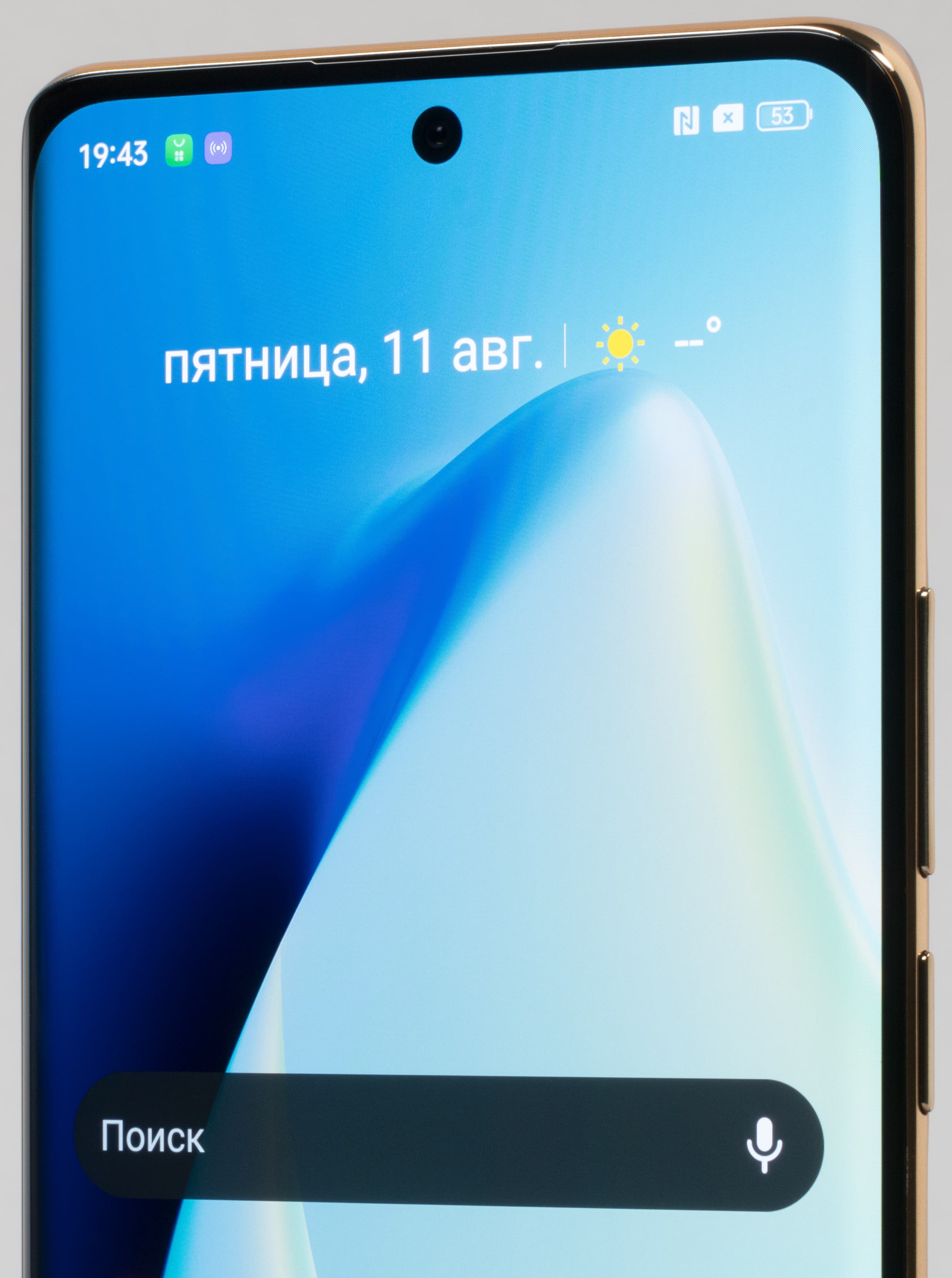 Realme 11 Pro+ выполнен в классическом флагманском дизайне последних лет — с обтекаемыми формами, без резких переходов между гранями и плоских поверхностей. Переднее и заднее стекла загнуты, боковая рамка заужена и закруглена. В руке смартфон лежит комфортно, но прокручивается, словно кусочек мыла, потому что боковины еще и скользкие.