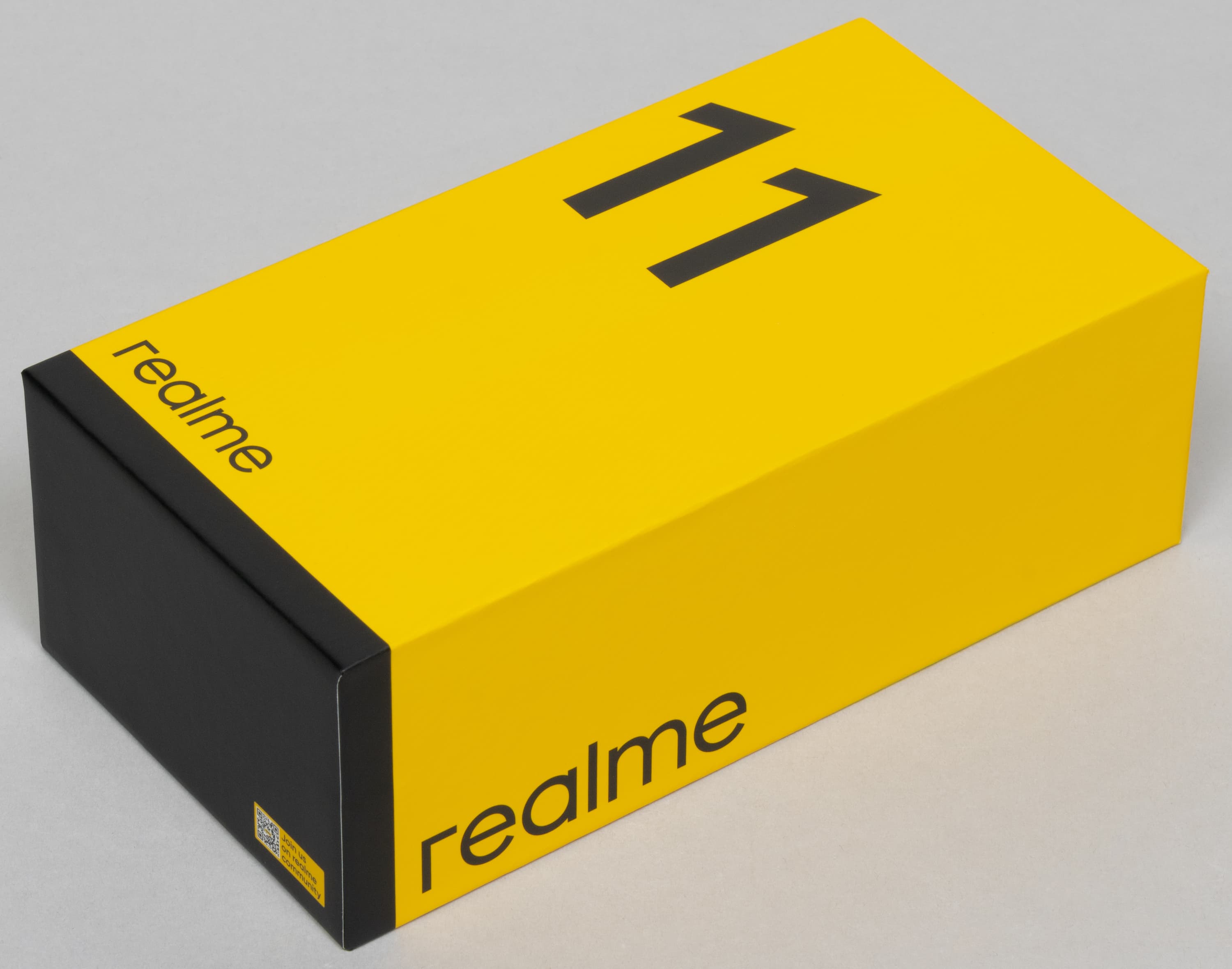 Смартфон Realme 11 поставляется в картонной коробке с привычным желто-черным оформлением.