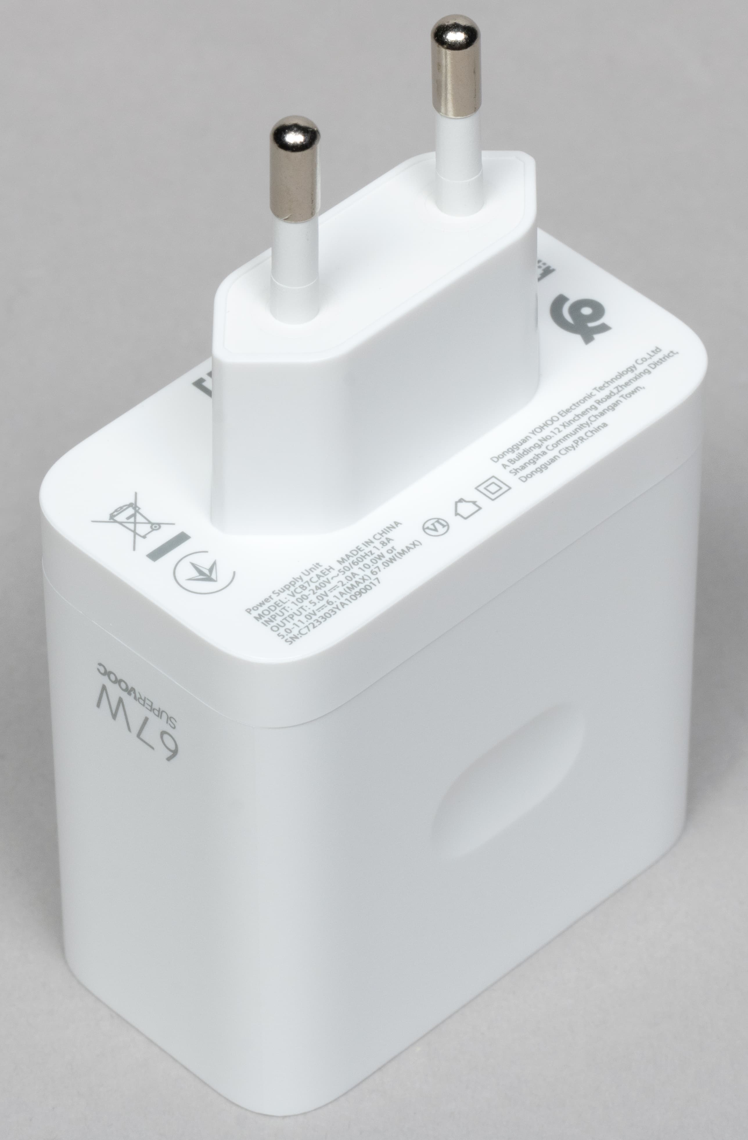 От комплектного сетевого зарядного устройства мощностью 67 Вт смартфон полностью заряжается в течение 45 минут. Беспроводная зарядка не поддерживается.