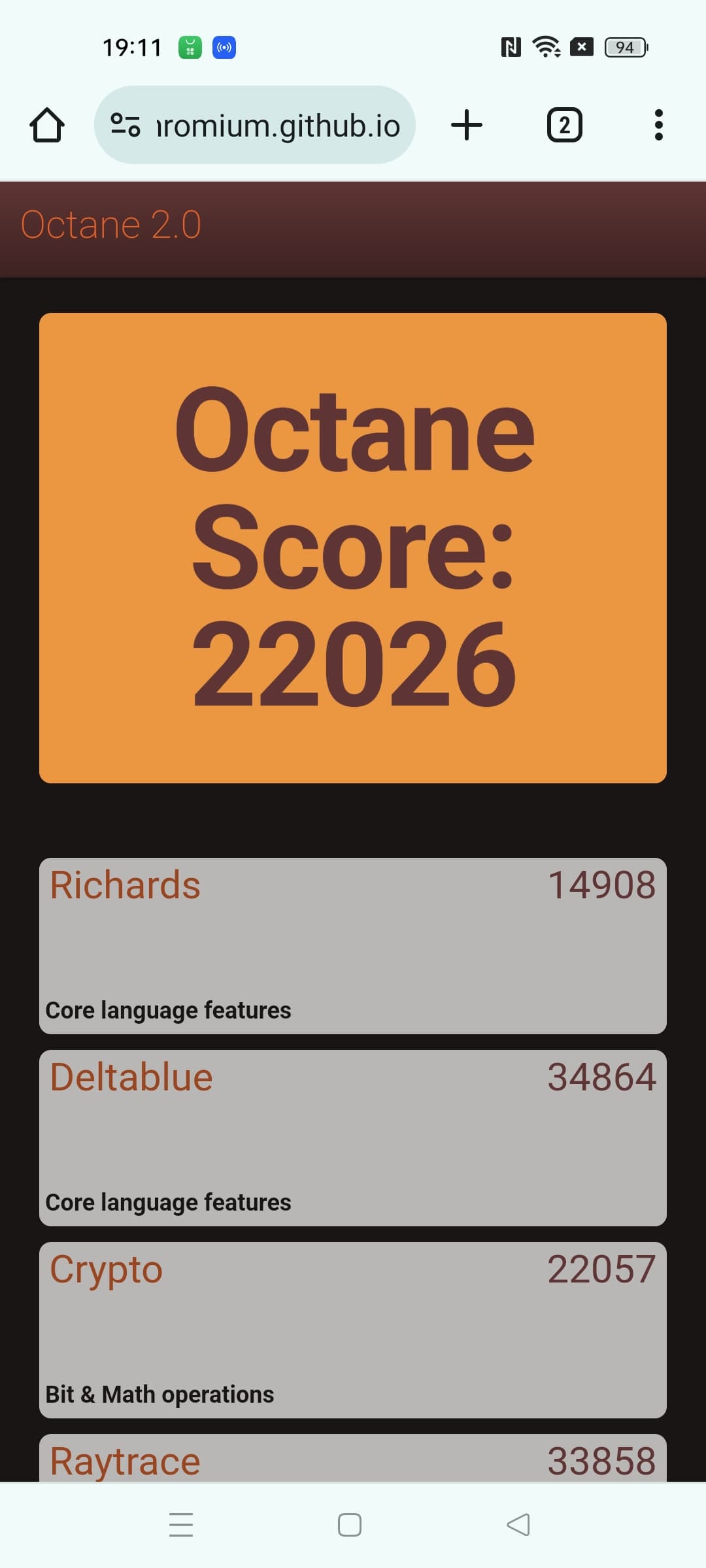 | Google Octane 2 (больше — лучше) | 22026 | 27796 | 29329 | 27070 | 19194 |