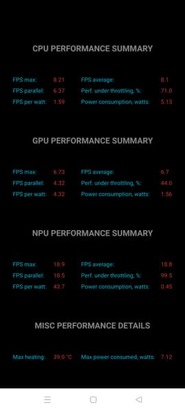 Тест на снижение производительности при нагреве мы проводим с помощью программы Burnout Benchmark, которая позволяет нагружать CPU, GPU и NPU: