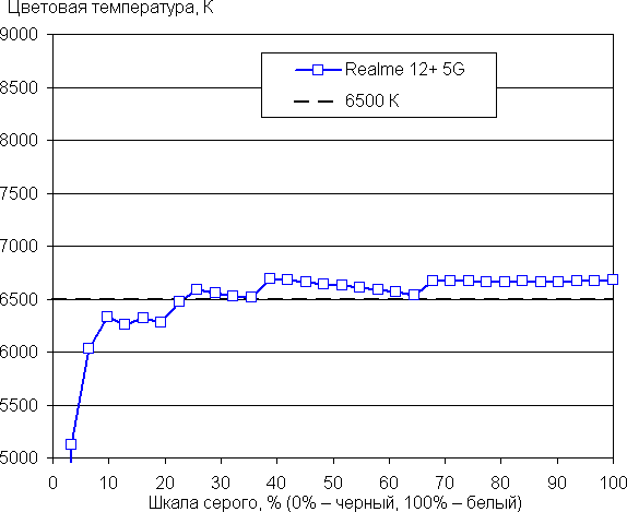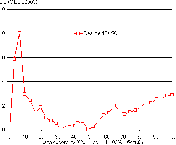 (Самые темные области шкалы серого в большинстве случаев можно не учитывать, так как там баланс цветов не имеет большого значения, да и погрешность измерений цветовых характеристик на низкой яркости высокая.)