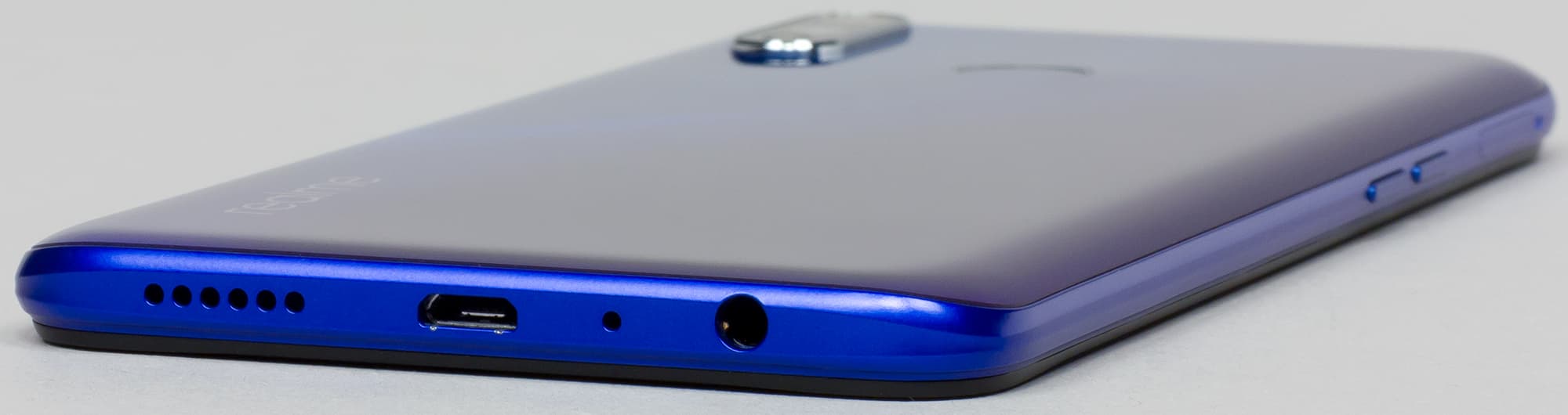 В нижнем торце порт USB представлен, неожиданно, разъемом Micro-USB, а не Type-C. Лучше бы производитель все же поддержал всеобщий переход на Type-C, быстрее бы избавились от «двойных стандартов». Сюда же, в нижний торец, выведены основной динамик, разговорный микрофон и 3,5-миллиметровый выход на наушники.