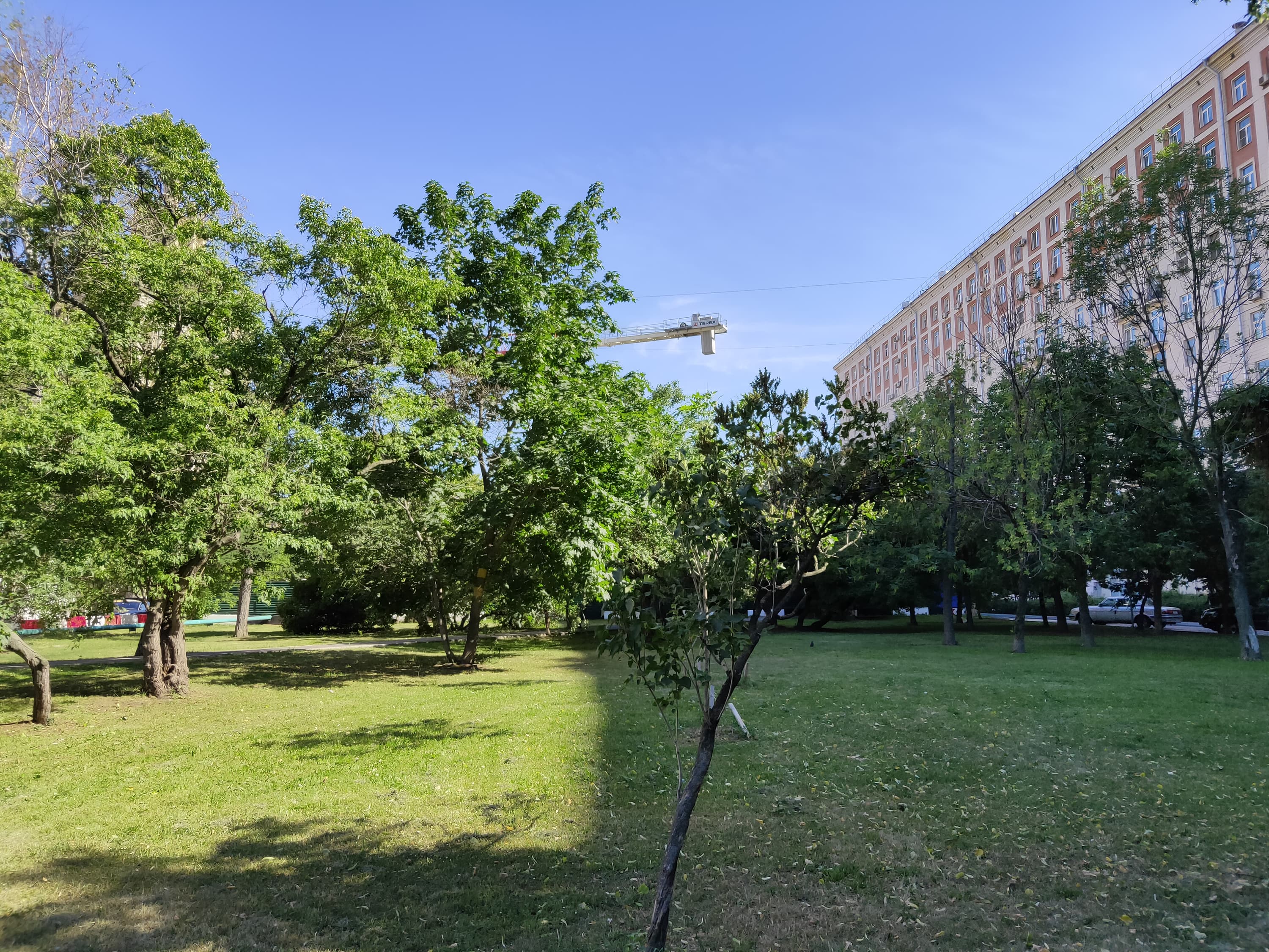 В целом качество съемки очень хорошее, хотя и не флагманское. Последствия работы шумодава видны в тенях и на проводах, но в целом шумодав не усердствует, картинка не превращается в пластилиновую мазню, зато предлагает ненавязчивую рябь в зоне размытия. Резкость по всему полю кадра хорошая, без явных провалов. В тенях и при слабом освещении качество, конечно, проседает.