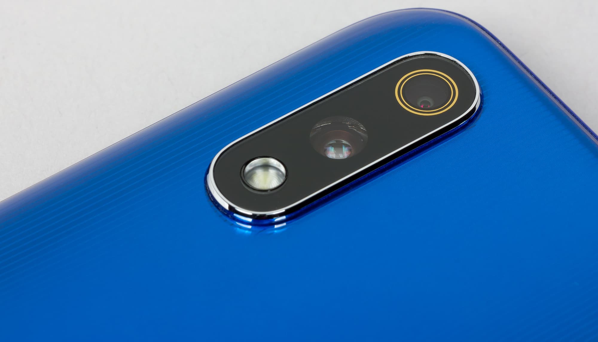 Тыльная камера состоит из двух модулей. Основной имеет сенсор Sony IMX519 с разрешением 16 Мп (размер матрицы 1/2,6″, размер пикселя 1,22 мкм) и объектив с диафрагмой f/1,7 с фазовым PDAF-автофокусом. Он дополнен датчиком измерения глубины резкости с разрешением 5 Мп. Оптической стабилизации у камеры нет, вспышка очень яркая. В видоискателе присутствует кнопка зумирования, но оптического зума здесь нет, это цифровое приближение.