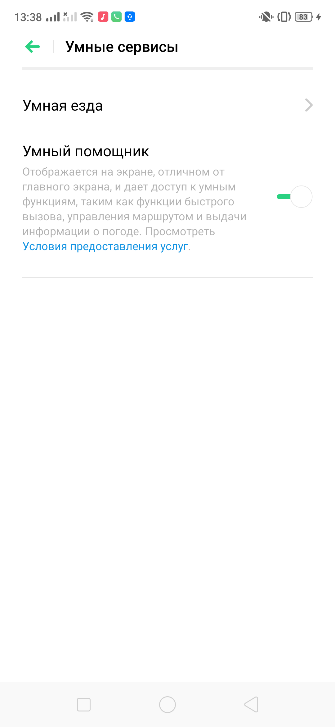 Имеется несколько специальных режимов, комбинируя которые, можно добиться максимального комфорта в использовании смартфона. Другое дело, что далеко не всегда вовремя про них вспоминаешь. Игровой режим скрывает привычные оповещения и позволяет записывать и делиться игровыми моментами. Отдельный режим для вождения транспортных средств отключает на время поездки все уведомления, а звонки проходят только от выбранных абонентов, остальные отклоняются (звонившему автоматически отправляется SMS-сообщение). Входящие звонки отображаются крупным шрифтом/с помощью больших кнопок. На экране показываются только два варианта: принять или отклонить звонок. Плохо только, что перевод порой «хромает»: везде такой режим называется «вождение», а здесь его перевели как «умная езда». Кроме того, есть детский режим, режим разделенного экрана и многое другое.