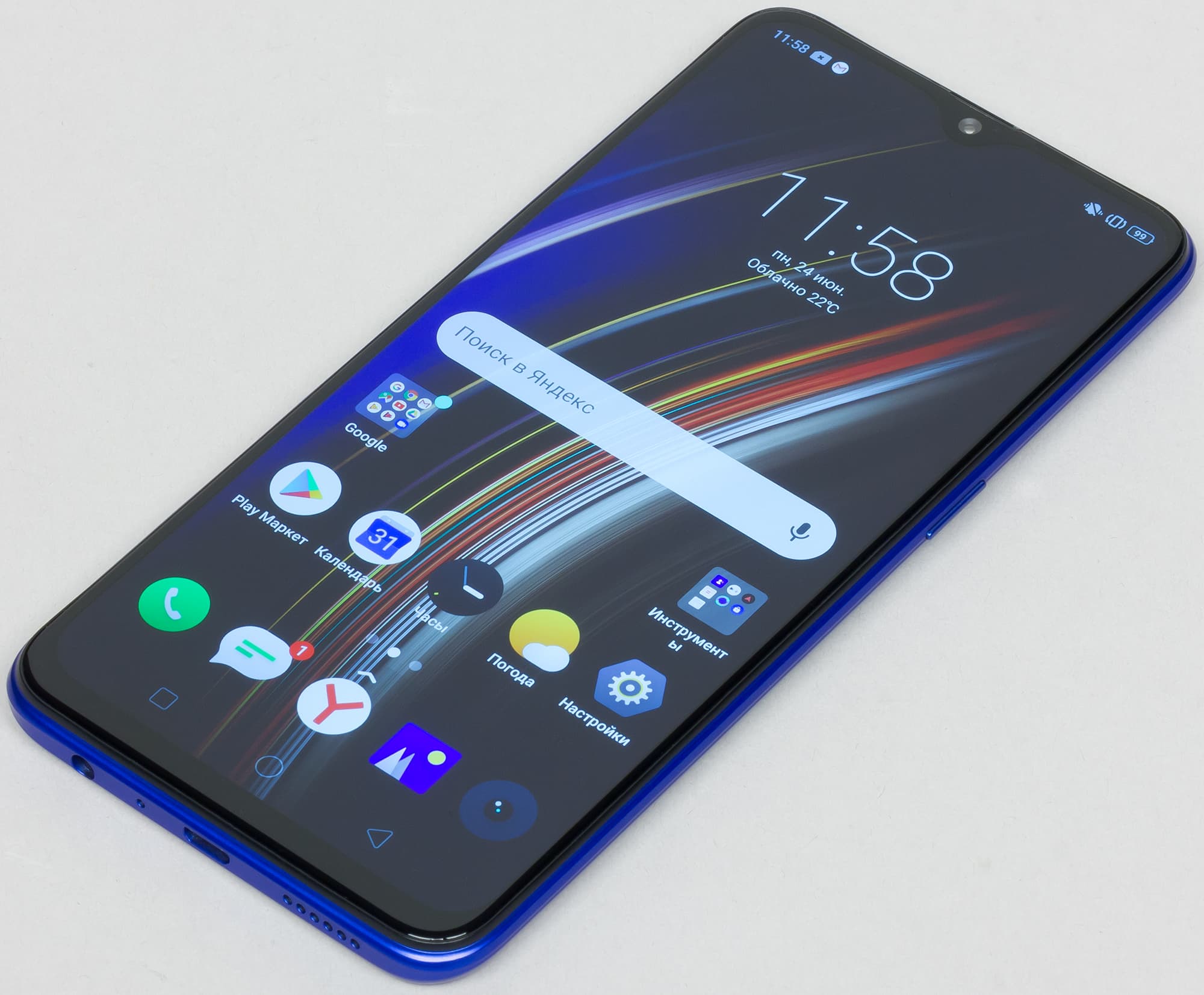 Зато вырез в верхней части экрана порадовал своими небольшими размерами: это маленькая «капля», а не широкая «челка», и это хорошо. Плохо, что здесь не нашлось места светодиодному индикатору событий.