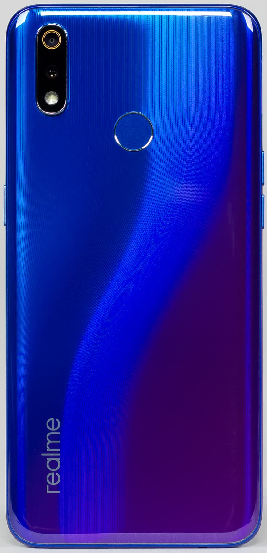 Задняя стенка сама по себе весьма интересна. Она также пластиковая, не стеклянная, но разработчики считают это преимуществом. Сравнивая свой продукт, например, с более толстым смартфоном Redmi Note 7, в котором используется 2,5D-стекло, создатели realme 3 Pro утверждают: «3D-дизайн обеспечивает более тонкий, легкий и приятный на ощупь корпус с высокой устойчивостью к ударам». Кроме того, использование 3D-материалов открывает дополнительные возможности (например, нанесение световой сетки).