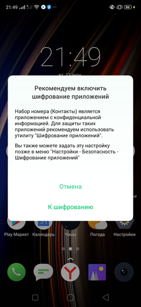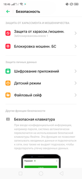 Также много внимания уделено защите: смартфон при первом включении сам предложит и шифрование приложений включить, и защиту от «харассмента». Интерфейс богат на возможности, но перевод на русский язык можно бы еще «отшлифовать».