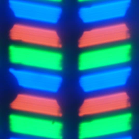 В данном смартфоне используется матрица типа IPS. Микрофотографии демонстрируют типичную для IPS структуру субпикселей: