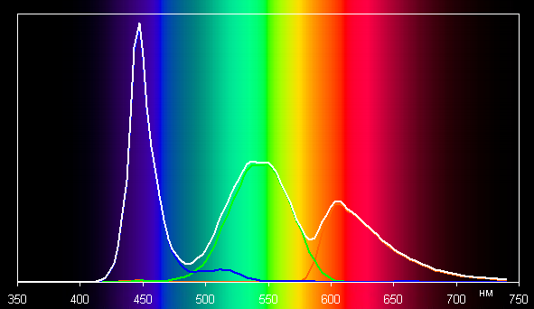 Спектры показывают, что светофильтры матрицы в умеренной степени подмешивают компоненты друг к другу: