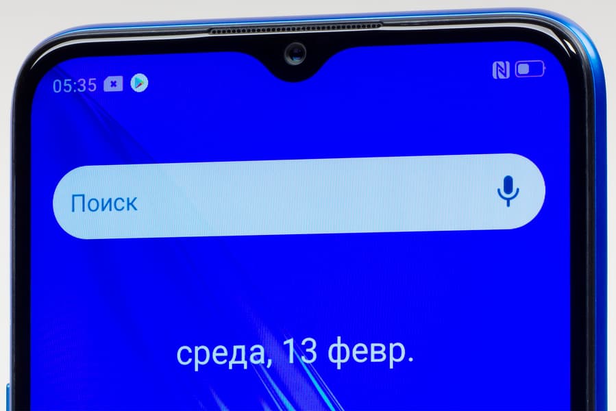 Фронтальный модуль камеры установлен в каплевидном вырезе в экране. Он здесь одиночный, без дополнительных модулей, а следовательно, не может обеспечить стопроцентную защиту при авторизации по лицу.