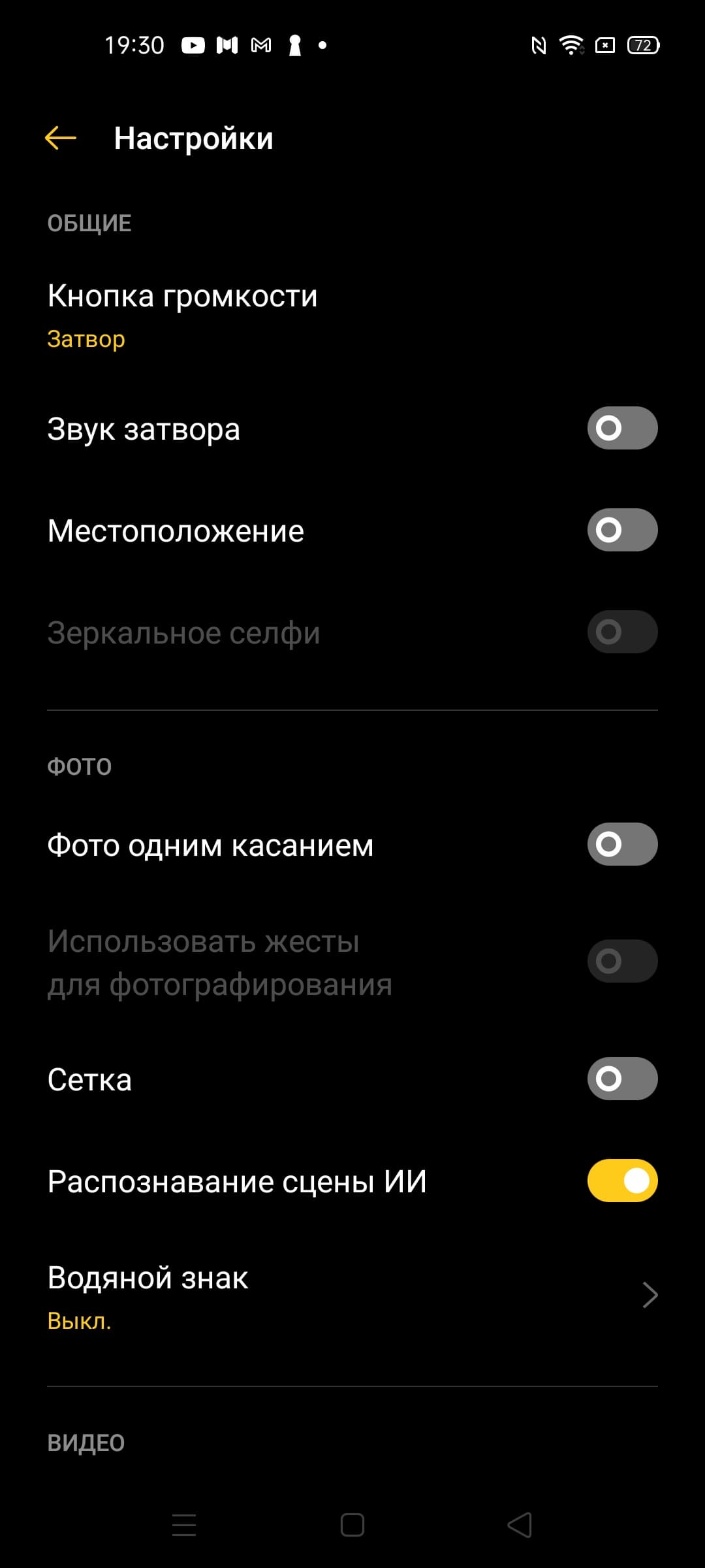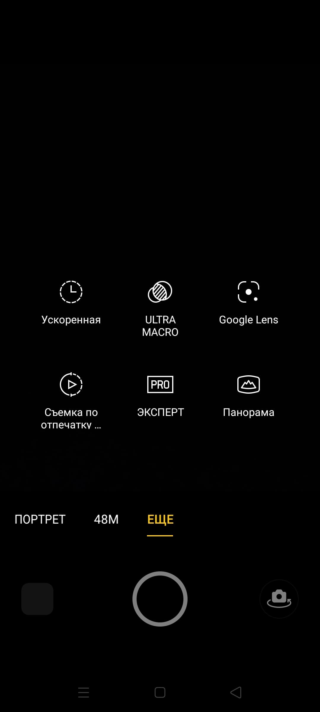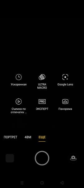 Интерфейс управления камерой удобный и хорошо знакомый: в нижнем ряду прокрутки — основные режимы съемки, дополнительные — в разделе «Еще», а настройки — под «шестеренкой». Главный отличительный момент у всех смартфонов Realme — это очень удобное быстрое переключение на «полное» разрешение. Иконка этого режима находится прямо в ползунке видоискателя.