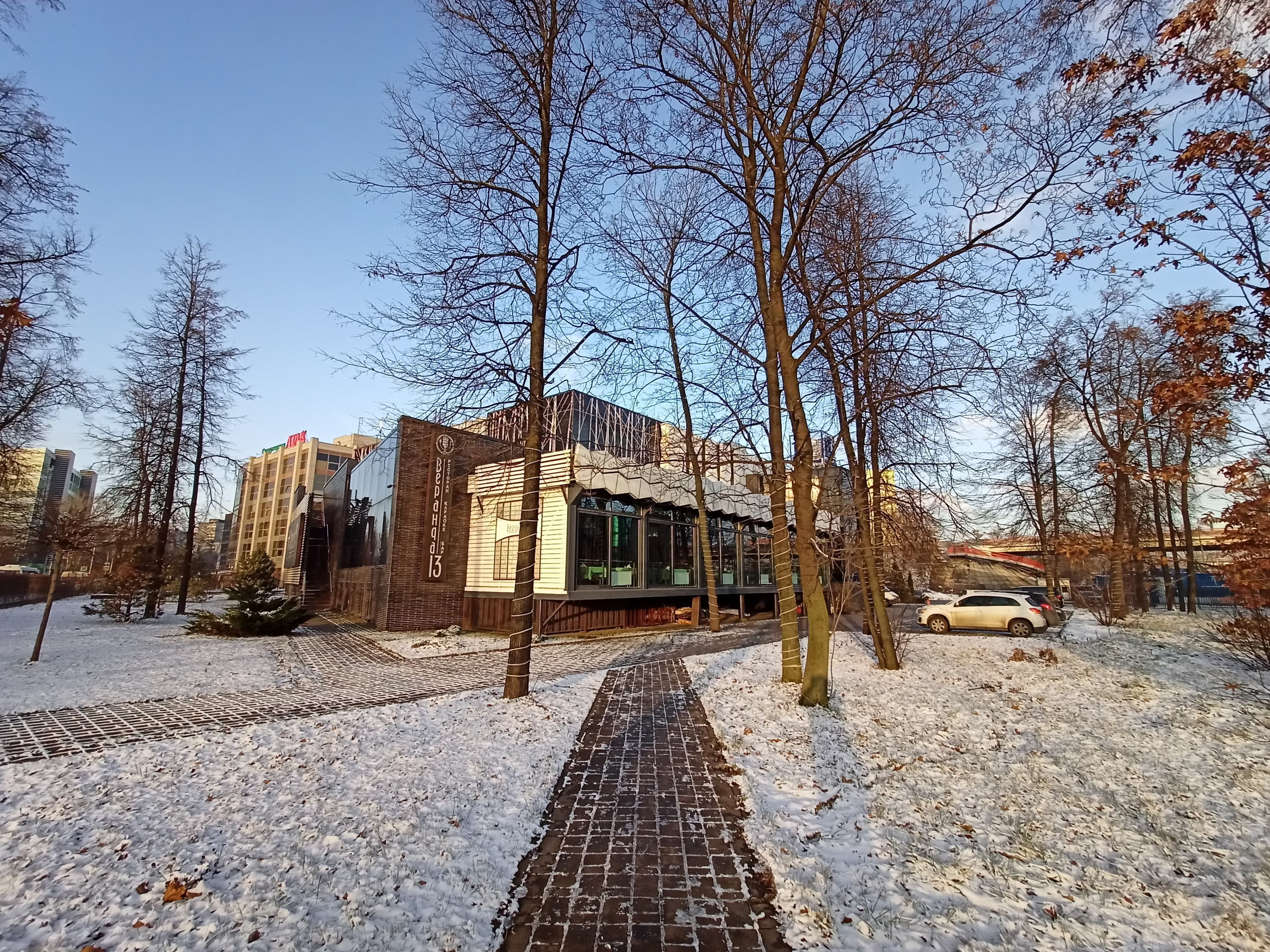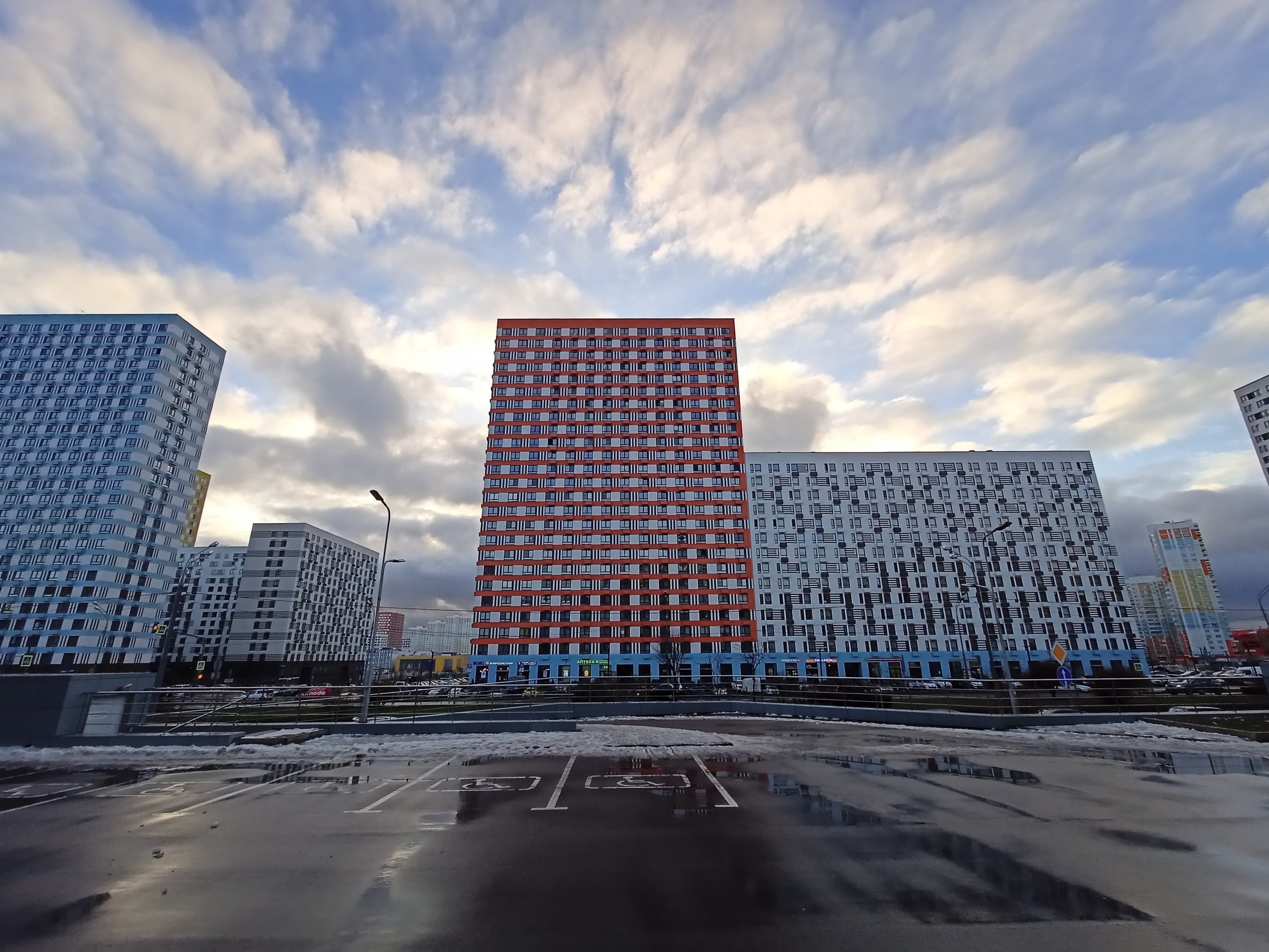 Второй модуль, ультраширокоугольный (119°), выдает качество ниже. Цветовой баланс с основной камерой не совпадает, детализация низкая, картинка смотрится рыхловатой, особенно по краям кадра. Оптика тоже, очевидно, не из дорогих: по бокам наблюдаются смазы. Картинка в целом темнее, присутствуют завалы в тенях.
