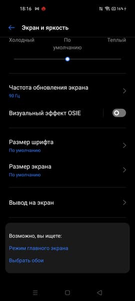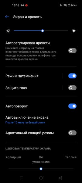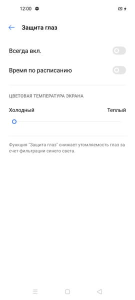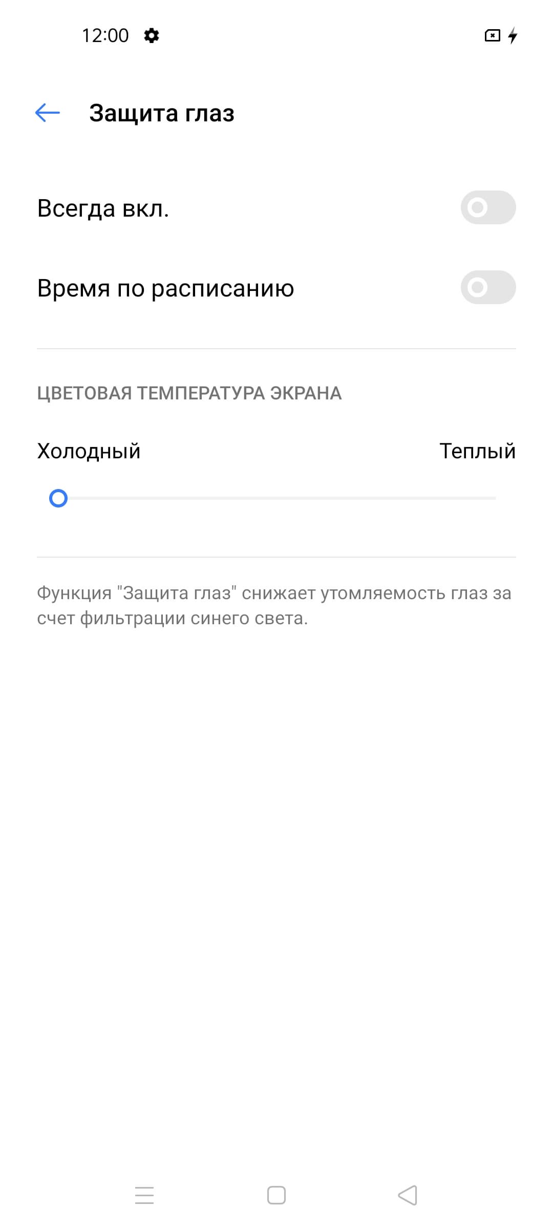 Также присутствует настройка, позволяющая снизить интенсивность синей компоненты.