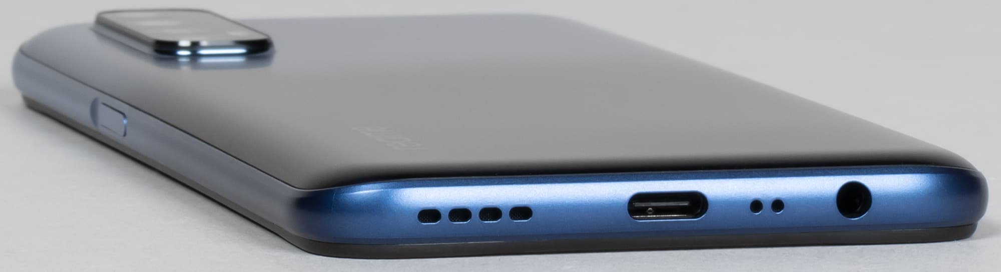На нижнем торце — 3,5-миллиметровый аудиовыход на наушники, разъем USB-C и динамик с микрофоном.