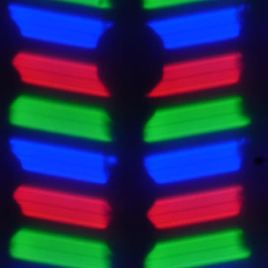 В данном смартфоне используется матрица типа IPS. Микрофотографии демонстрируют типичную для IPS структуру субпикселей: