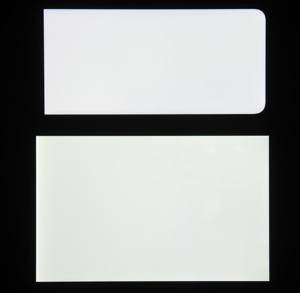 При перпендикулярном взгляде равномерность черного поля средняя (для наглядности яркость подсветки на смартфоне выведена на максимум):