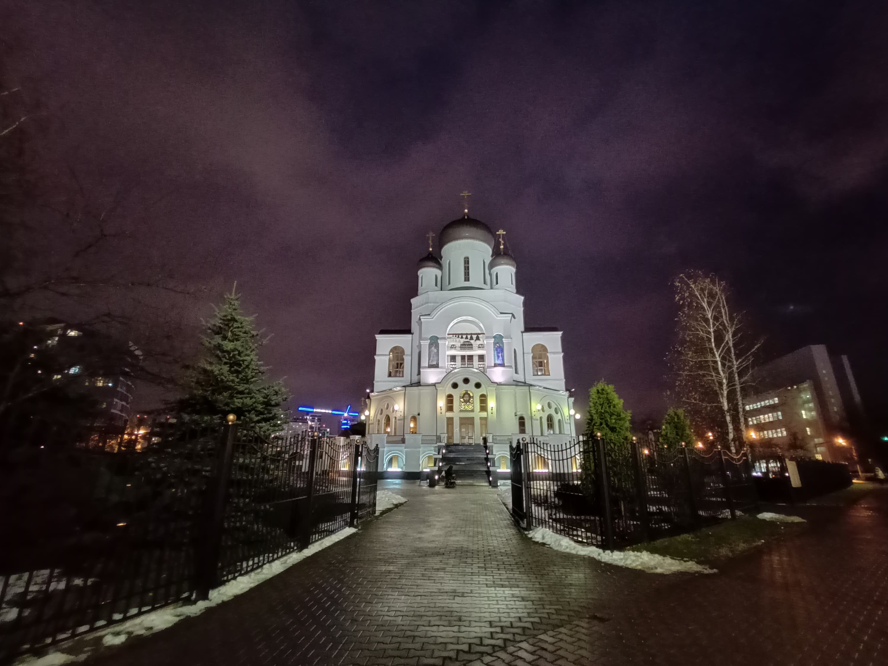 В ночном режиме можно снимать лишь на главную камеру. Широкоугольная ночью не справляется: много шумов, низкая по детализации картинка. Картинка с основной камеры тоже не блещет детализацией, но хотя бы шумов поменьше.