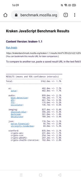 | Mozilla Kraken (мс, меньше — лучше) | 3162 | 20516 | 2921 | 3269 | 5586 |