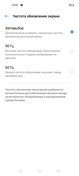 По критерию вывода кадров качество воспроизведения видеофайлов на экране самого смартфона хорошее, так как в большинстве случаев кадры (или группы кадров) могут (но не обязаны) выводиться с более-менее равномерным чередованием интервалов и без пропусков кадров. Частота обновления экрана ниже 60 Гц, где-то между 58 и 59 Гц, поэтому в случае файлов с 60 кадр/с 1-2 кадра за секунду пропускаются. Отметим, что в настройках можно включить режим с частотой обновления 90 Гц, но на воспроизведение видео с аппаратным декодированием это никак не влияет.