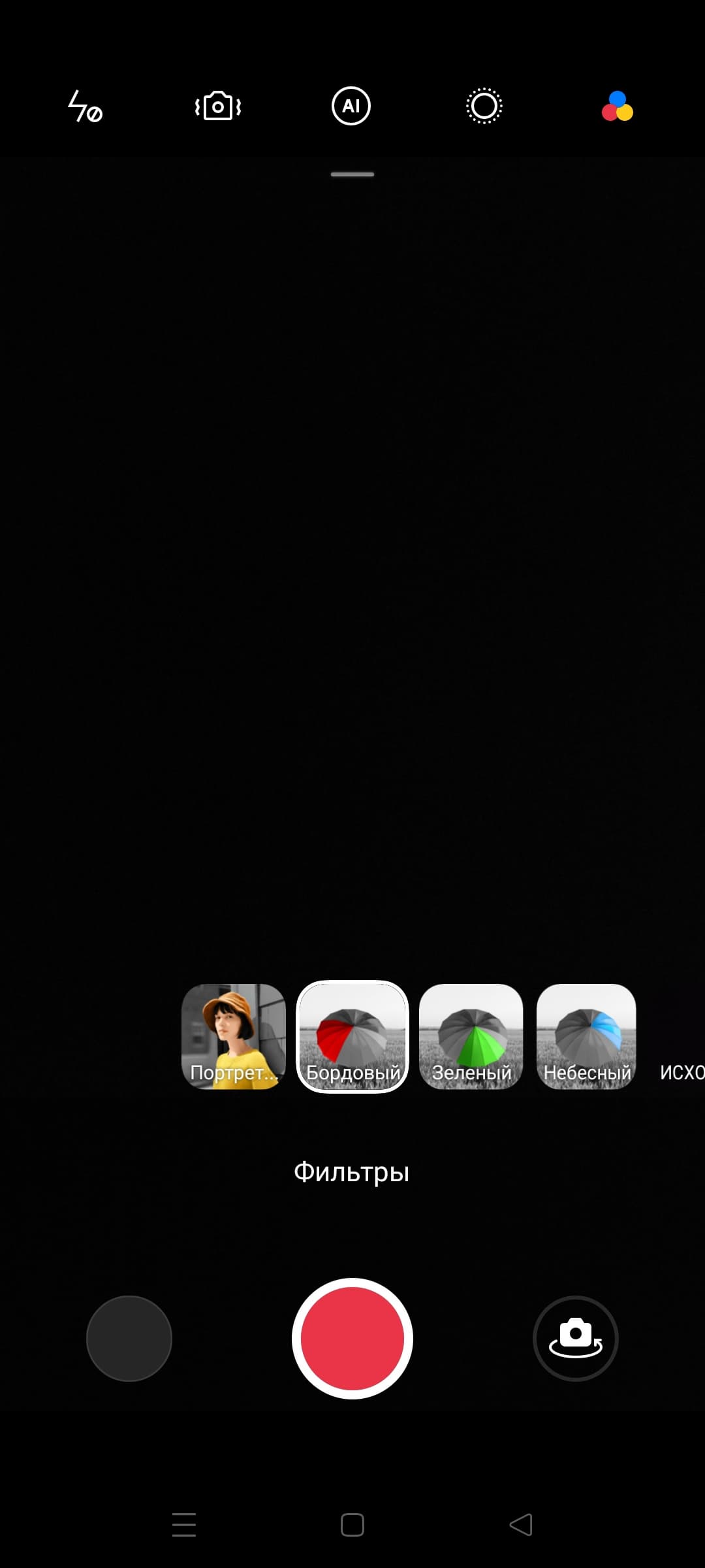Возможно, просто не хватило места, поскольку в видоискателе в режиме видеосъемки уместились переключатели вспышки, стабилизации, ИИ, размытия фона и цветовых фильтров. Последние, кстати, помимо прочего, умеют еще и выделять один цвет, оставляя остальные в ч/б. Это тоже уже не новость, все это было в прошлых моделях.