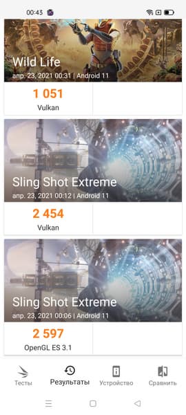 | 3DMark Sling Shot Ex Vulkan (больше — лучше) | 2454 | 2150 | 2777 | 3619 | 1335 |