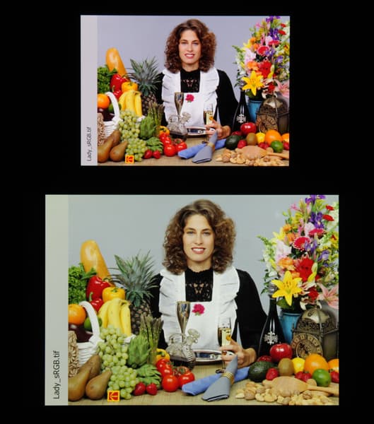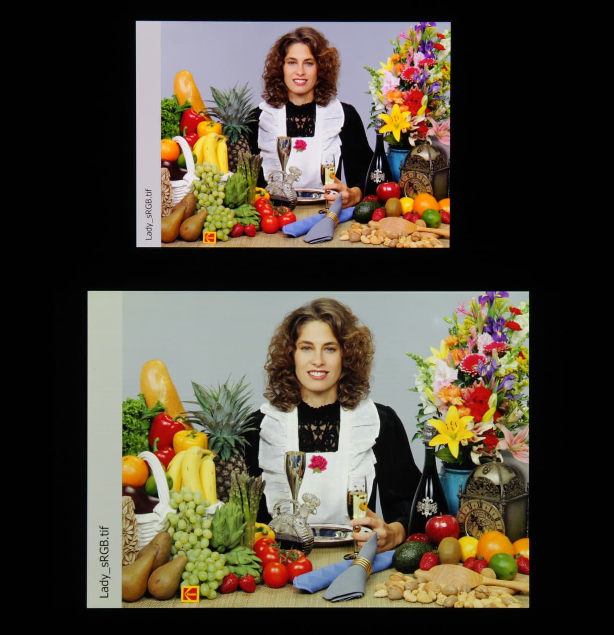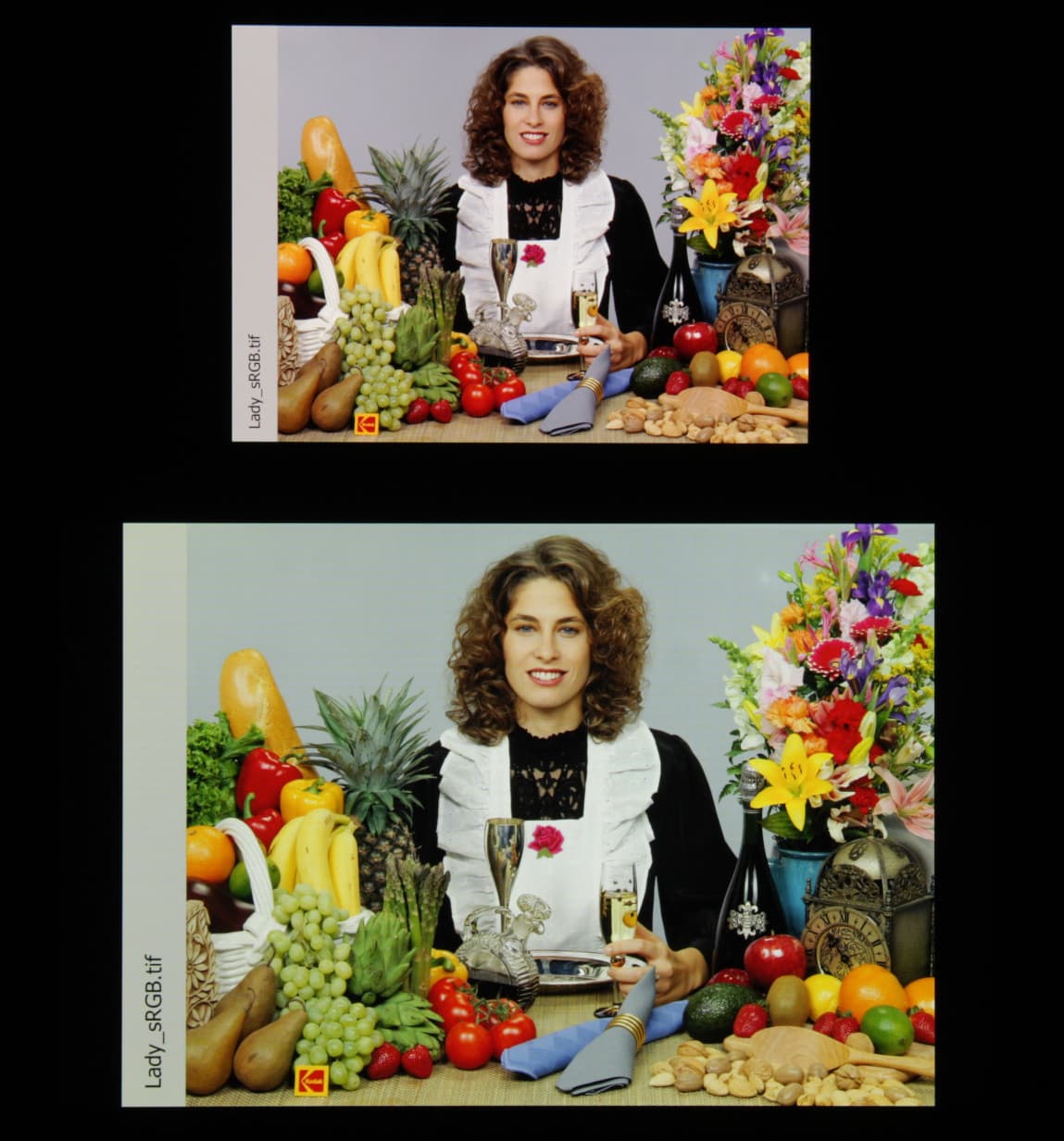 Отметим, что на экранах с широким цветовым охватом без соответствующей коррекции цвета обычных изображений, оптимизированных для устройств sRGB, выглядят неестественно насыщенными. Отсюда и рекомендация: в большинстве случаев смотреть кино, фотографии и все естественное лучше при выборе профиля Нежность. Профиль Яркие цвета уместен при просмотре материала с охватом DCI-P3, принятым в цифровом кинематографе, но в быту встречающимся редко.