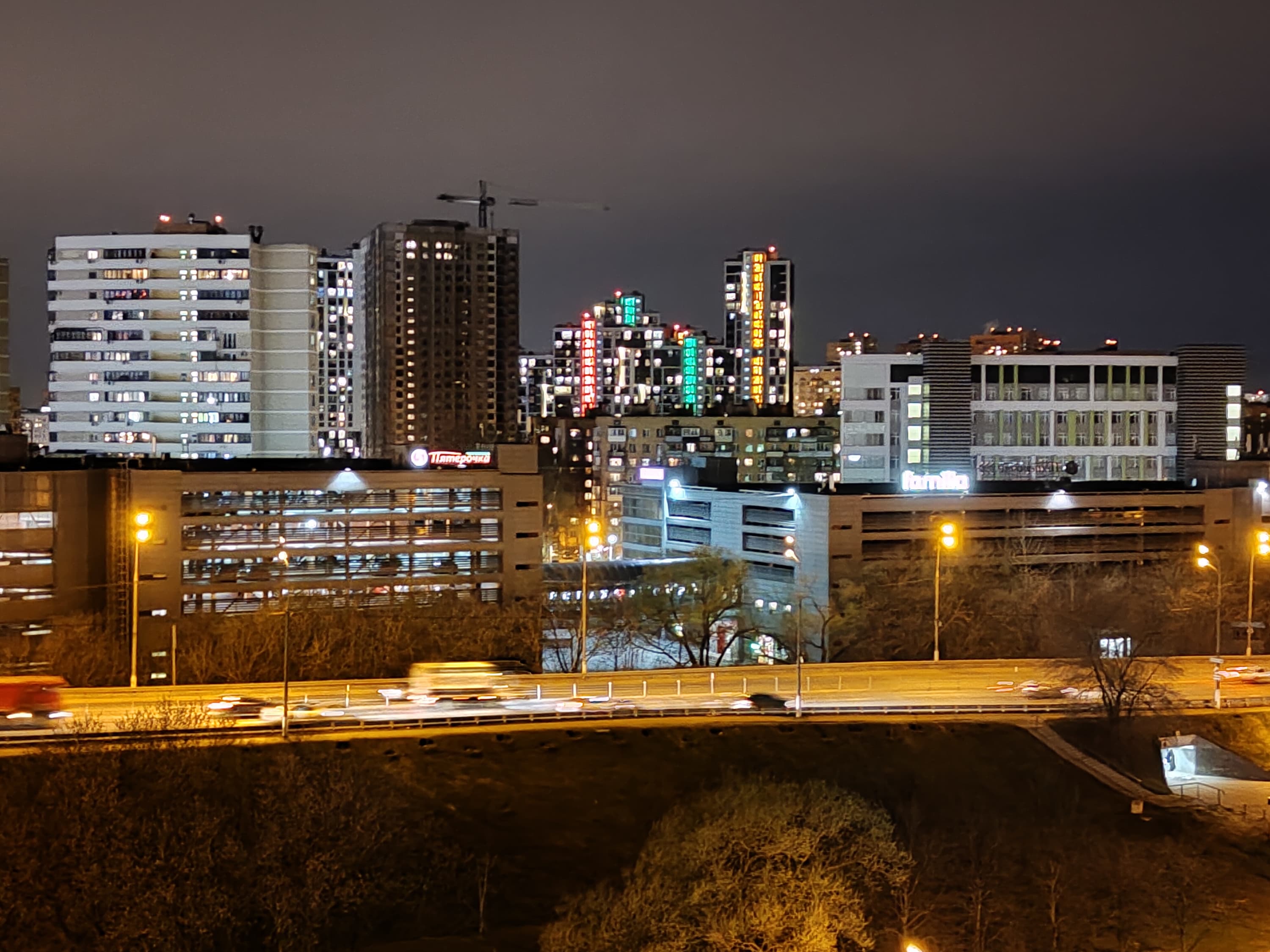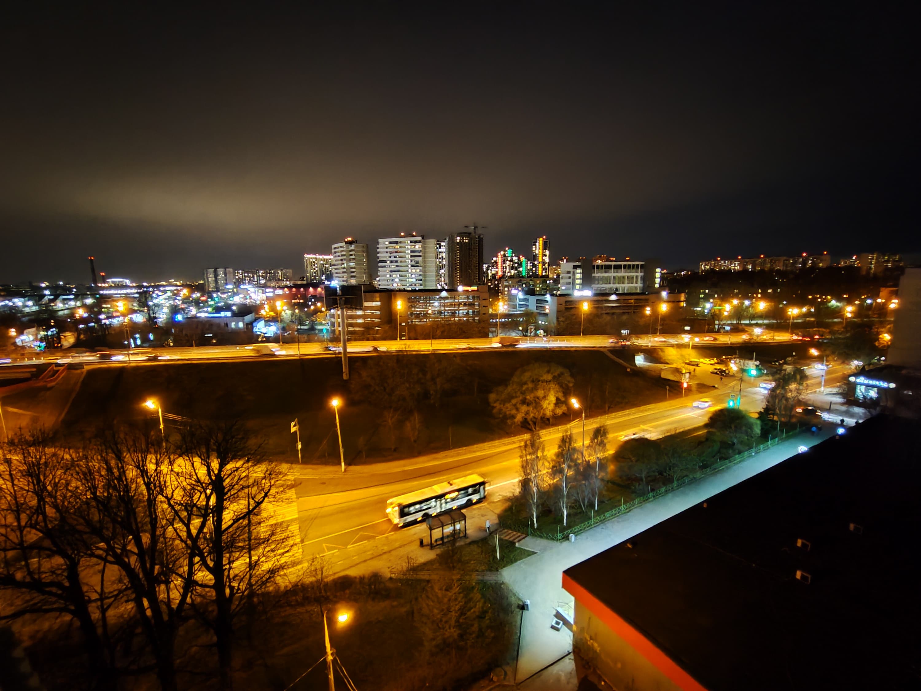В ночном режиме в видоискателе доступны те же 4 иконки, но «те, да не те»: помимо переключения на две физические камеры — основную и широкоугольную — иконки позволяют включить цифровое приближение, только теперь это не 3× и 5×, а 2× и 5×. Качество с каждым шагом падает, хотя на основную камеру порой можно сделать вполне интересный снимок освещенного ночного города. Собственно, для этого ночной режим и создавался. Есть еще специфический режим «ночного неба», он не нов и применяется не только в смартфонах Realme, но в городе он совершенно не актуален, поскольку неба ночью из-за светового шума просто не видно.
