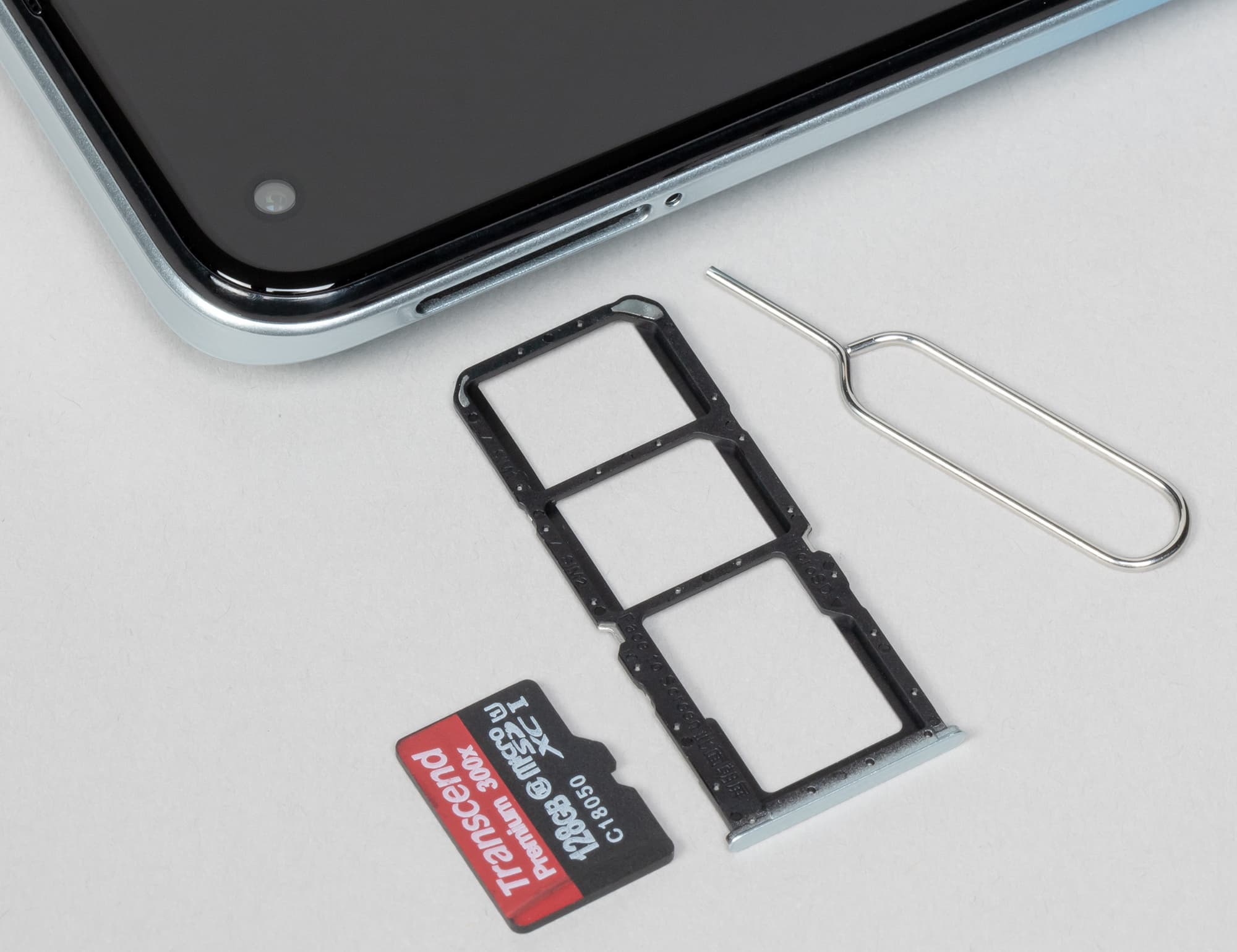 Разъем для карточек не гибридный, а тройной: чтобы вставить карту памяти, нет необходимости жертвовать одной из карт Nano-SIM. Поддерживается горячая замена карточек.