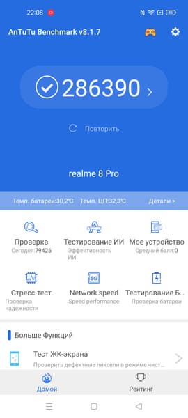 Переднее стекло не имеет сильных загибов к бокам, а потому нет ни бликов, ни ошибочных нажатий. Все эти элементы в целом делают Realme 8 Pro одним из самых привлекательных современных смартфонов в среднем сегменте.