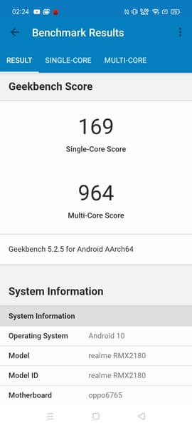 Смартфон Realme C15 работает на однокристальной системе MediaTek Helio G35 с восемью процессорными ядрами Cortex-A53 с частотой 1,8/2,3 ГГц. За графику отвечает GPU IMG PowerVR GE8320 с двумя ядрами с частотой до 680 МГц.