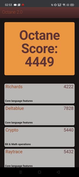 | Google Octane 2 (больше — лучше) | 4449 | 3918 | 4204 | 10381 | 8831 |