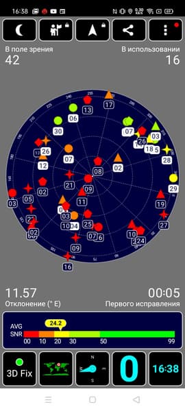 Навигационный модуль работает с GPS (с A-GPS), с отечественной Глонасс, с китайской Beidou и даже с европейской Galileo. Первые спутники при холодном старте обнаруживаются быстро, точность позиционирования не вызывает претензий. Установлен геомагнитный датчик, необходимый для работы электронного компаса.
