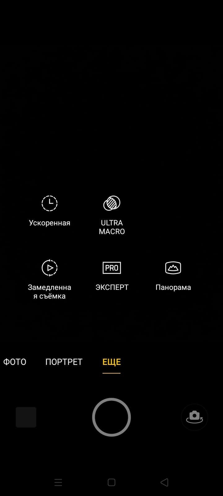 Интерфейс управления камерой в целом такой же, как в более дорогих аппаратах производителя, только дополнительных режимов во вкладке «Еще» тут меньше. Но все основные режимы присутствуют: есть авто-HDR, режим ручных настроек, а также портретный и ночной. Съемка в RAW штатно не предусмотрена.