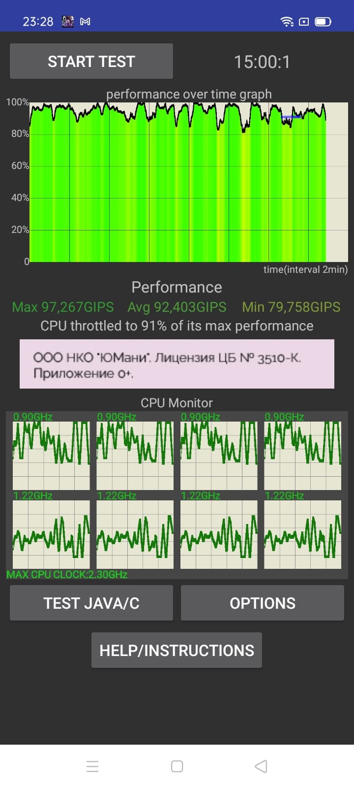 Тестирование традиционно проводилось на обычном уровне энергопотребления без использования функций энергосбережения, хотя таковые в аппарате имеются. Условия тестирования: выставлен минимальный комфортный уровень яркости (примерно 100 кд/м²). Тесты: беспрерывное чтение в программе Moon+ Reader (со стандартной, светлой темой); беспрерывный просмотр видео в HD-качестве (720р) через домашнюю сеть Wi-Fi; игра Injustice 2 с автонастройками графики.