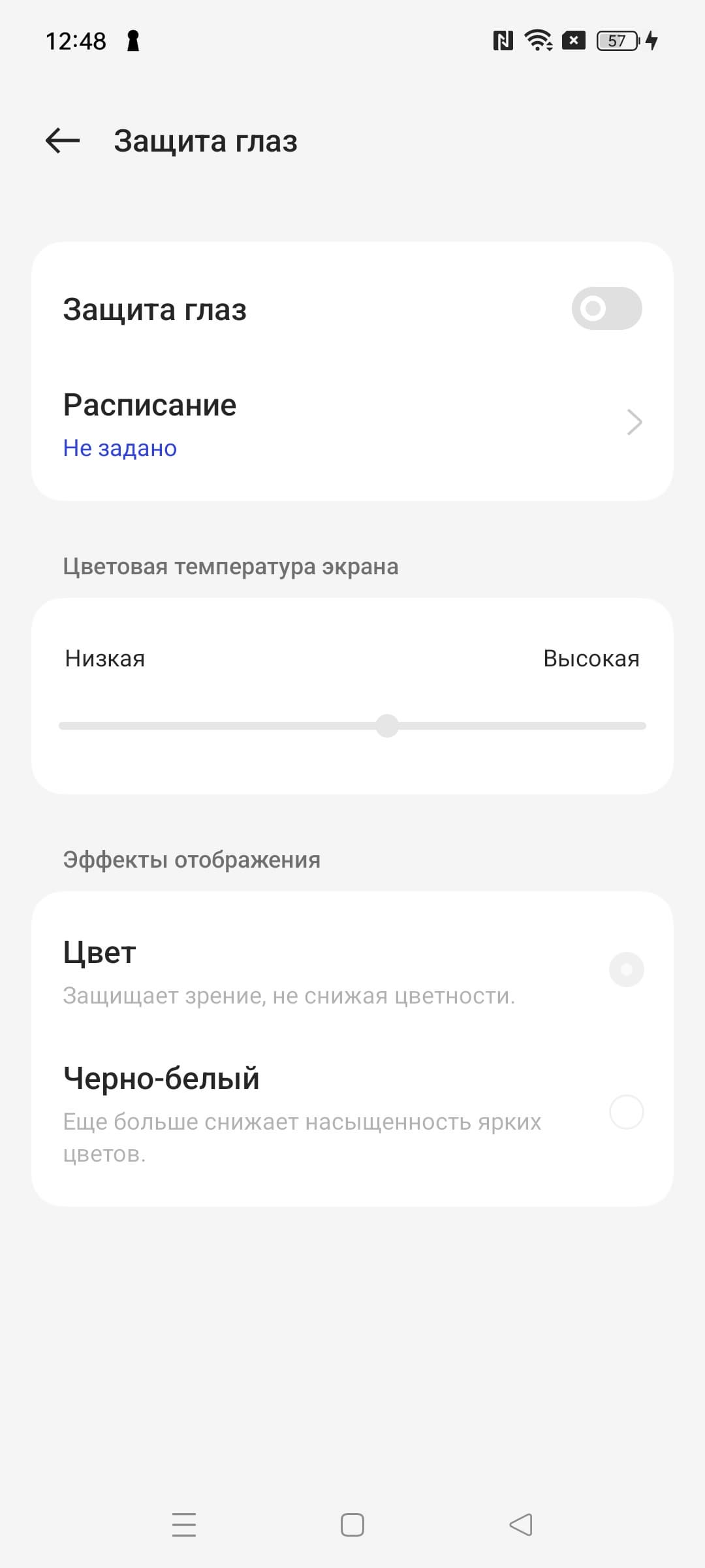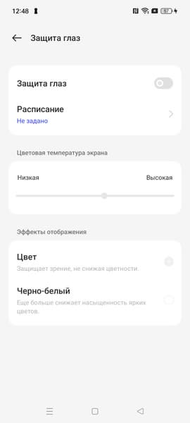 Также присутствует настройка, позволяющая снизить интенсивность синей компоненты.