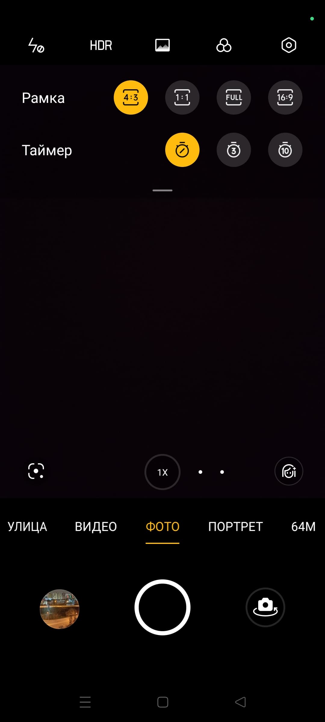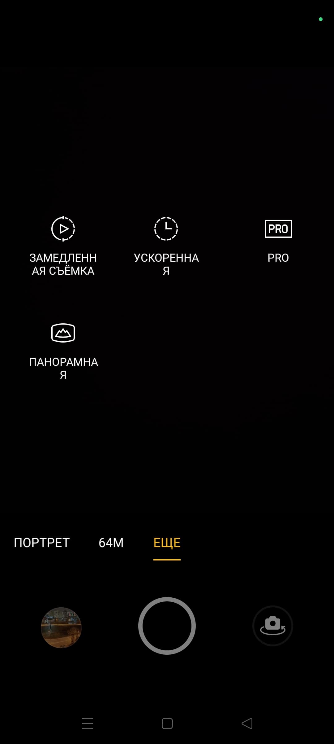 Realme C55 снимает лишь на одну настоящую тыльную камеру с сенсором 64 Мп и объективом f/1,79 с фазовым автофокусом. Ни длиннофокусного, ни широкоугольного, ни даже модуля для макросъемки нет. Нет и стабилизатора. Интерфейс управления съемкой тоже сильно упрощен — режимов гораздо меньше.