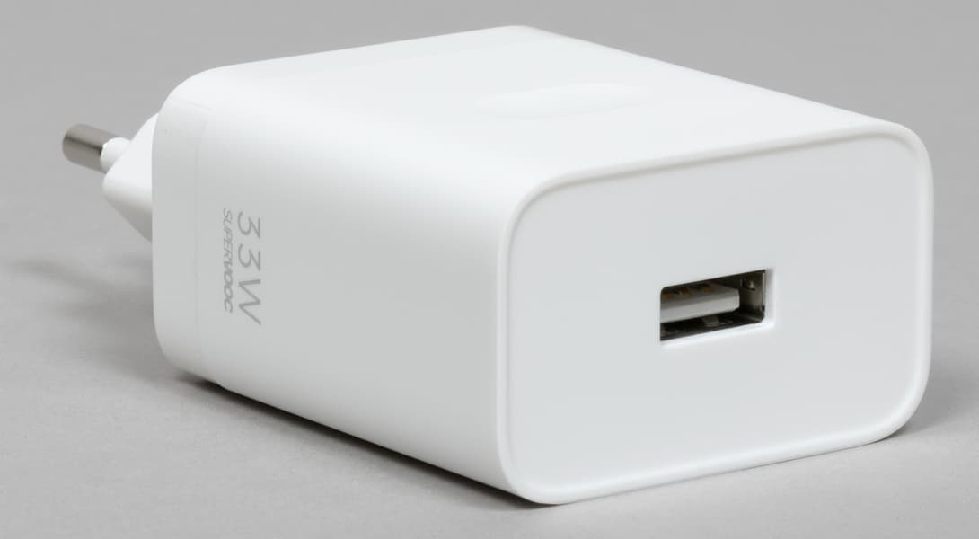 В комплекте со смартфоном идет соединительный кабель USB-C и сетевое зарядное устройство с максимальной выходной мощностью 33 Вт.