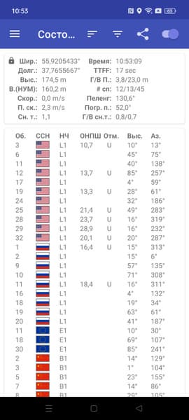 Навигационный модуль работает с GPS (A-GPS), Глонасс, BeiDou и Galileo. Первые спутники при холодном старте обнаруживаются быстро, точность позиционирования не вызывает претензий. Отрадно, что недорогой аппарат получил полный набор необходимых датчиков, вплоть до магнитного компаса и гироскопа.