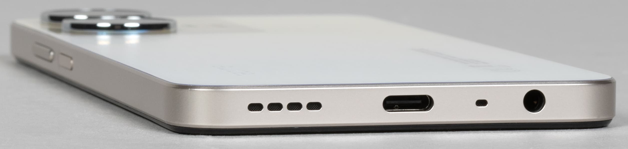 На нижнем торце размещены динамик, микрофон и разъем USB Type-C, установлен также 3,5-миллиметровый аудиовыход для наушников.