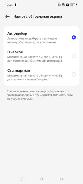 В настройках экрана можно включить режим с повышенной до 90 Гц частотой обновления, что приводит как минимум к увеличению плавности прокрутки списков в меню.